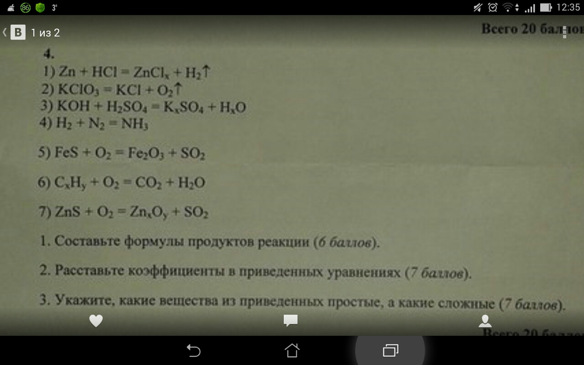 1) Zn+2HCl=ZnCl2(сложное)+H2(простое)