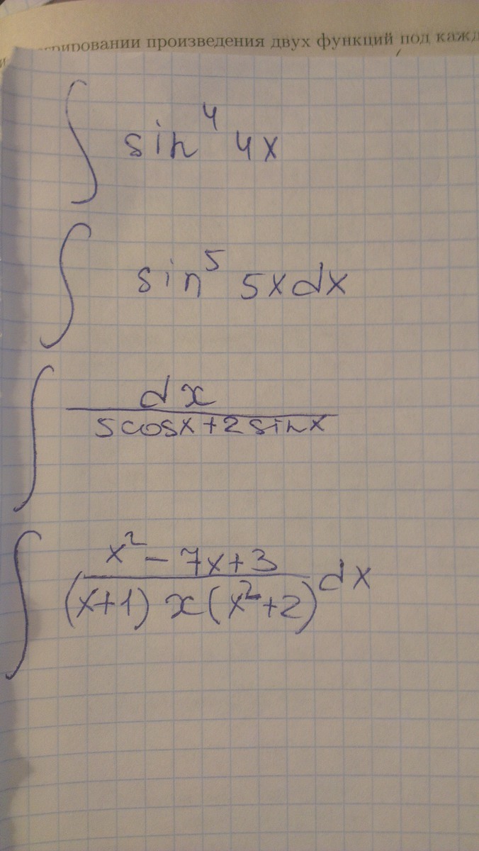 ∧∨sin^4(4x)dx=∨∧(1-cos8x)²/4dx=1/4∨∧(1-2cos8x+cos²8x)dx= 1/4∨∧(1-2cos8x+1/2+1/2*cos16x)dx=1/4(3/2x-2/8*sin8x+1/32*sin16x)