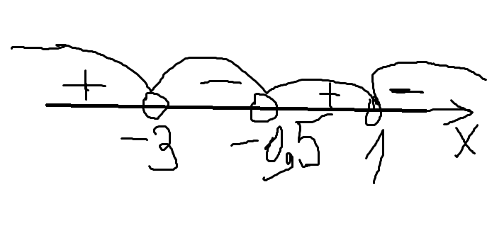 Ответ: x∈ ( - ∞; - 3 ) U ( - 0,5 ; 1 )