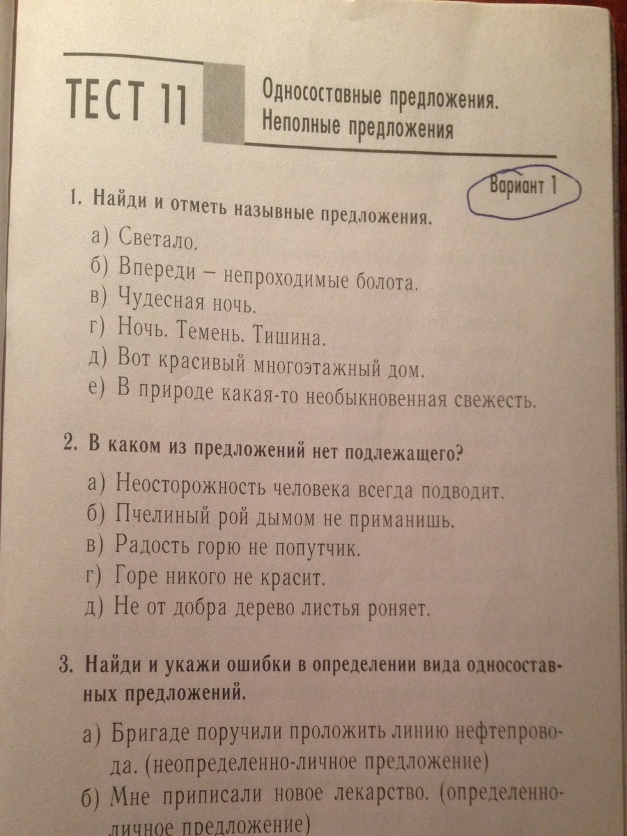 1)г так как ночь темень и тишина назывное предл.