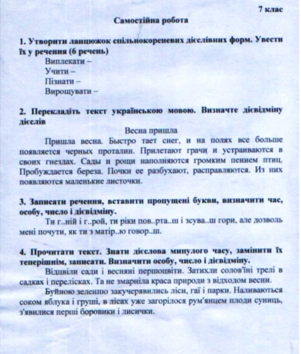 Прийшла весна. Швидко тане сніг, і на полях все більше з'являється чорних таловин. Прилітають грачі і влаштовуються у своїх гніздах. Сади і рощі наповнюються голосним співом птахів. Пробуджується береза. Бруньки її розбухають, розправляються. З них з'являються маленькі листочки.