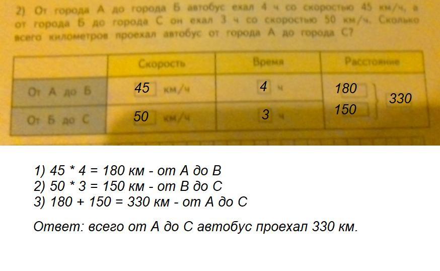 2) От города А до города Б автобус ехал 4 ч. со скоростью 50 км/ч.