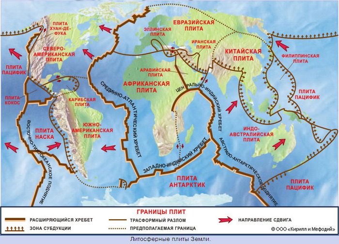 Это с картой надо работать. ! карта это движение литосферных плит, 2 карта их границы.