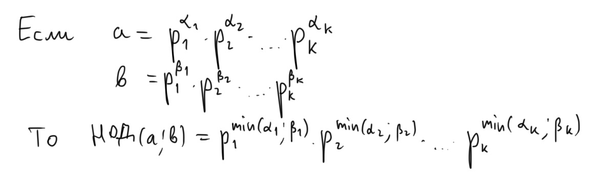 Добавил картинку с пояснением, что такое НОД двух чисел, если нам известно их разложение на простые множители