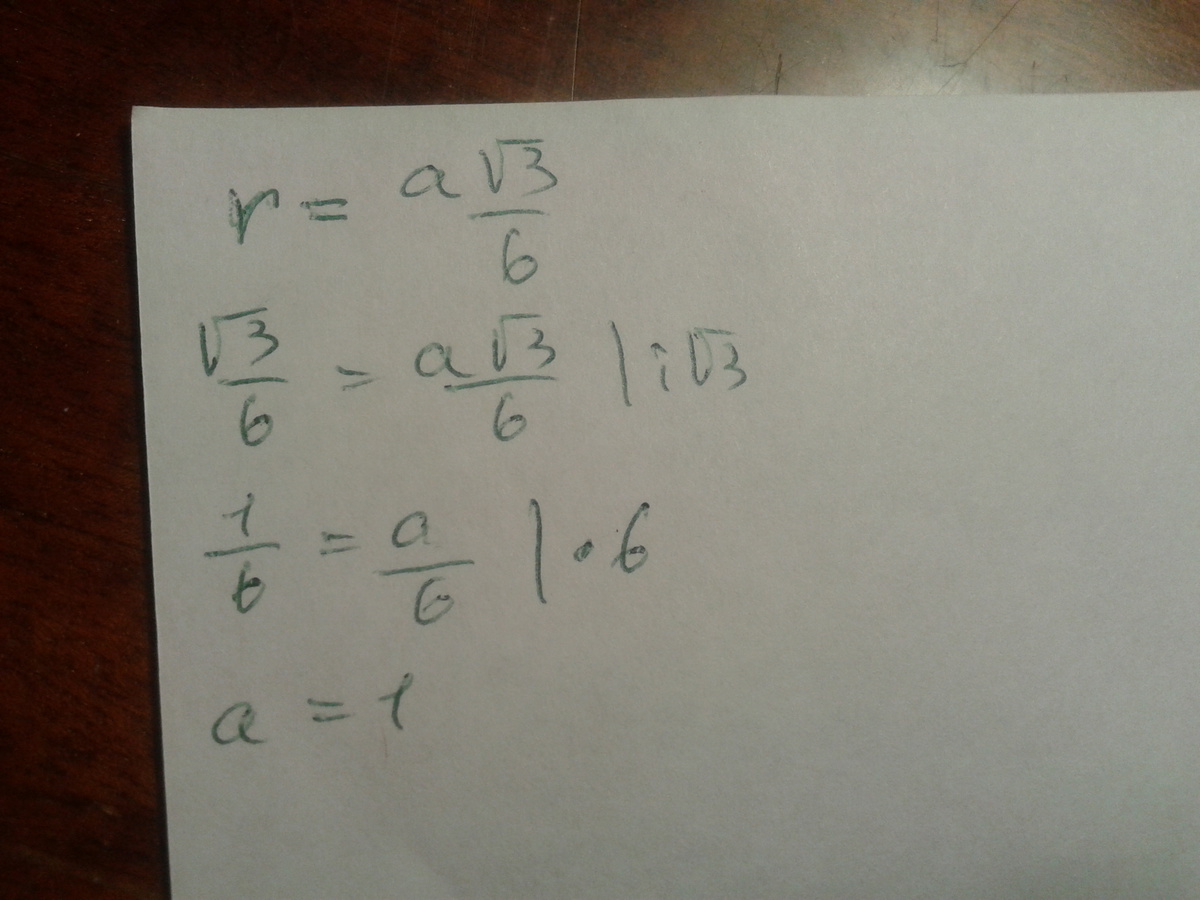 Радиус окружности , вписанной в правильный треугольник равен корень из 3 деленный на 6.Найдите сторону этого треугольника.