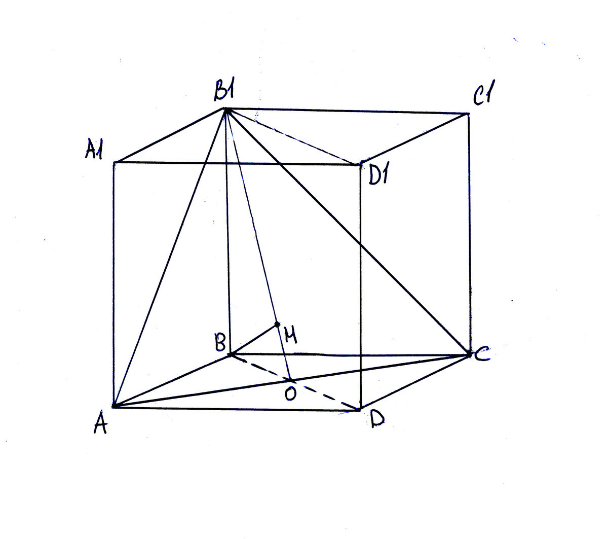3. Диагональное сечение DBB1D1 перпендикулярно прямой АС, поскольку в нем есть 2 прямых, перпендикулярных АС - это BD и ВВ1. Поэтому плоскости DBB1D1 и АСВ1 перпедикулярны (АСВ1 содержит прямую, пепендикулярную другой плоскости DBB1D1). Отсюда следует, что если в плоскости DBB1D1 выделить треугольник ВВ1О, где О - середина АС (центр квадрата АВСD), то высота ВМ, проведенная к гипотенузе ВО, и есть перпендикуляр к плоскости АВС1. В самом деле, ВМ перпендикулярно В1О и АС (напомню - АС перпендикулярно плоскости DBB1D1), то есть 2 прямым в плоскости АСВ1.