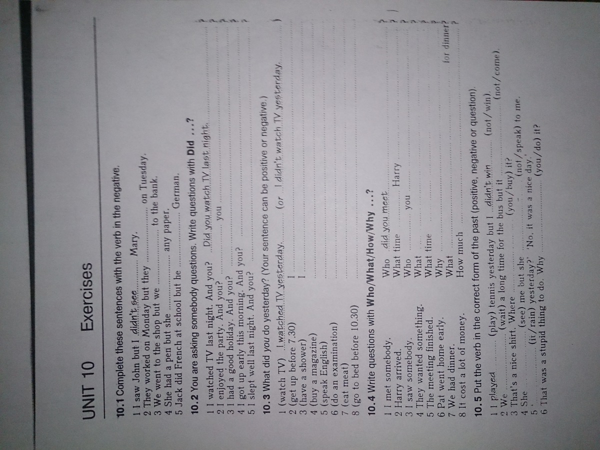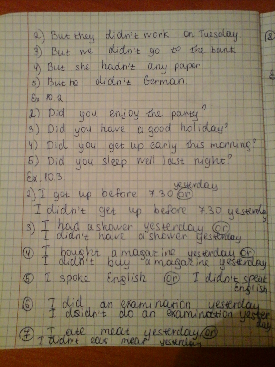 1)didn't work; 2)didn't go; 3)didn't have; 4)didn't do