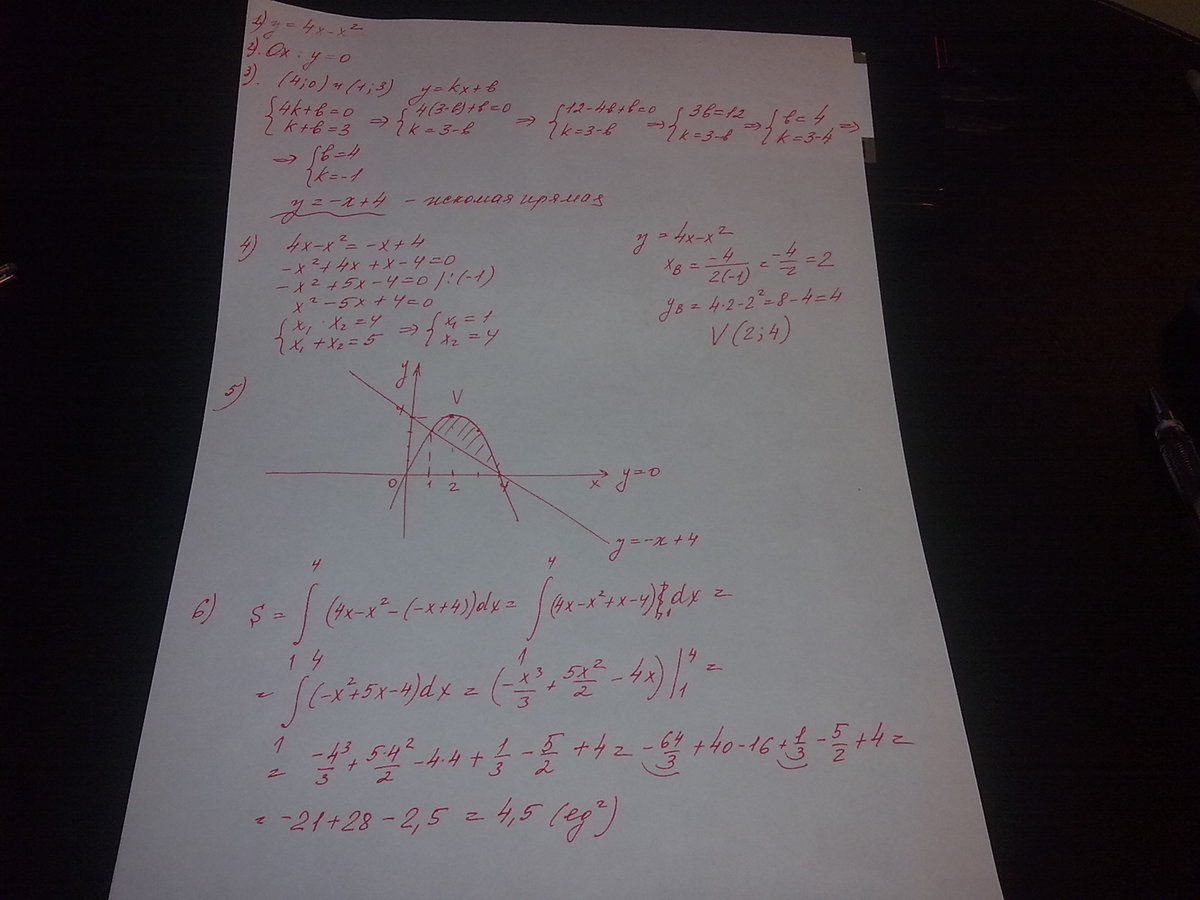 Найдите площадь фигуры, ограниченной параболой у=4х-
