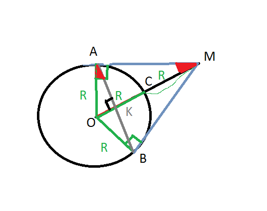 ∠АОМ=∠ВОМ = 60°), значит хорда перепендикулярна радиусу ОС