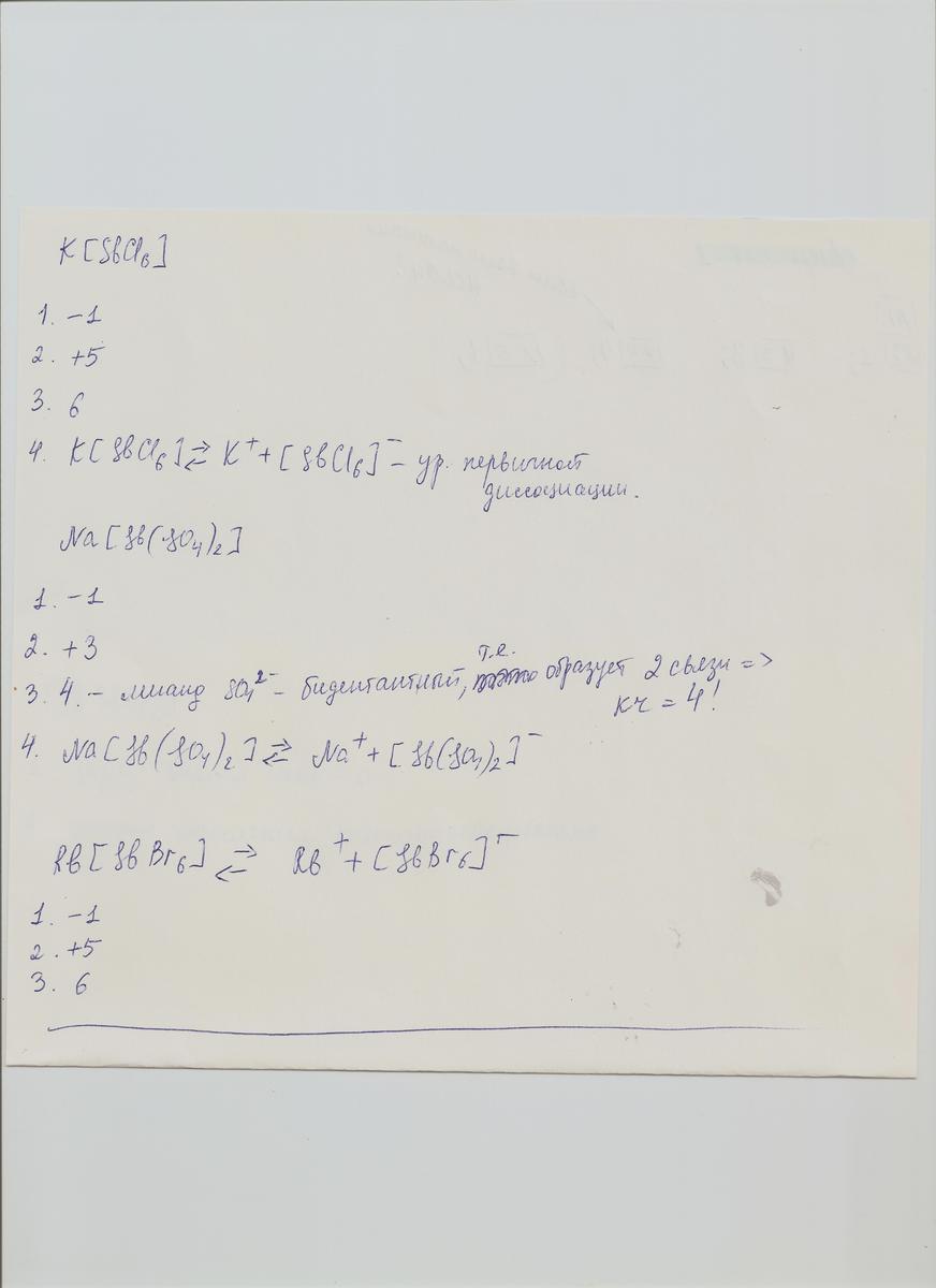 сурьмы в соединениях: [PbSbBr6], K[SbCl6], Na[Sb(SO4)2]