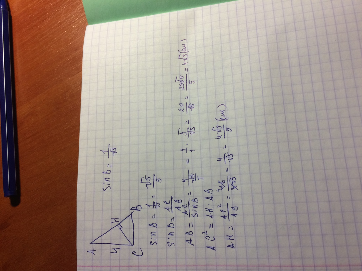 В прямоугольном треугольнике ABC с прямым углом С CH - высота, sinB= 1/корень из 5,AC=4