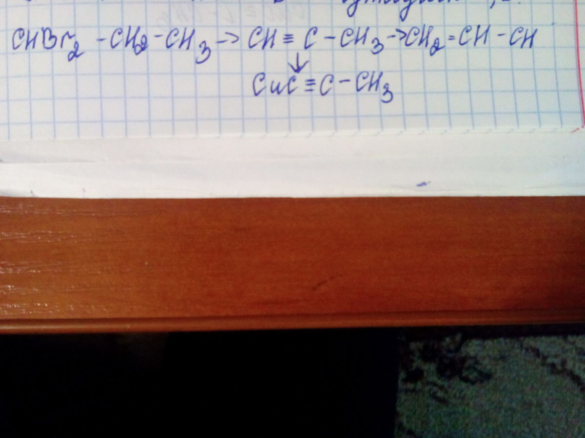CH(Br₂)-CH₂-CH₃ + 2KOH(спирт) = CH≡C-CH₃ + 2KBr + 2H₂O