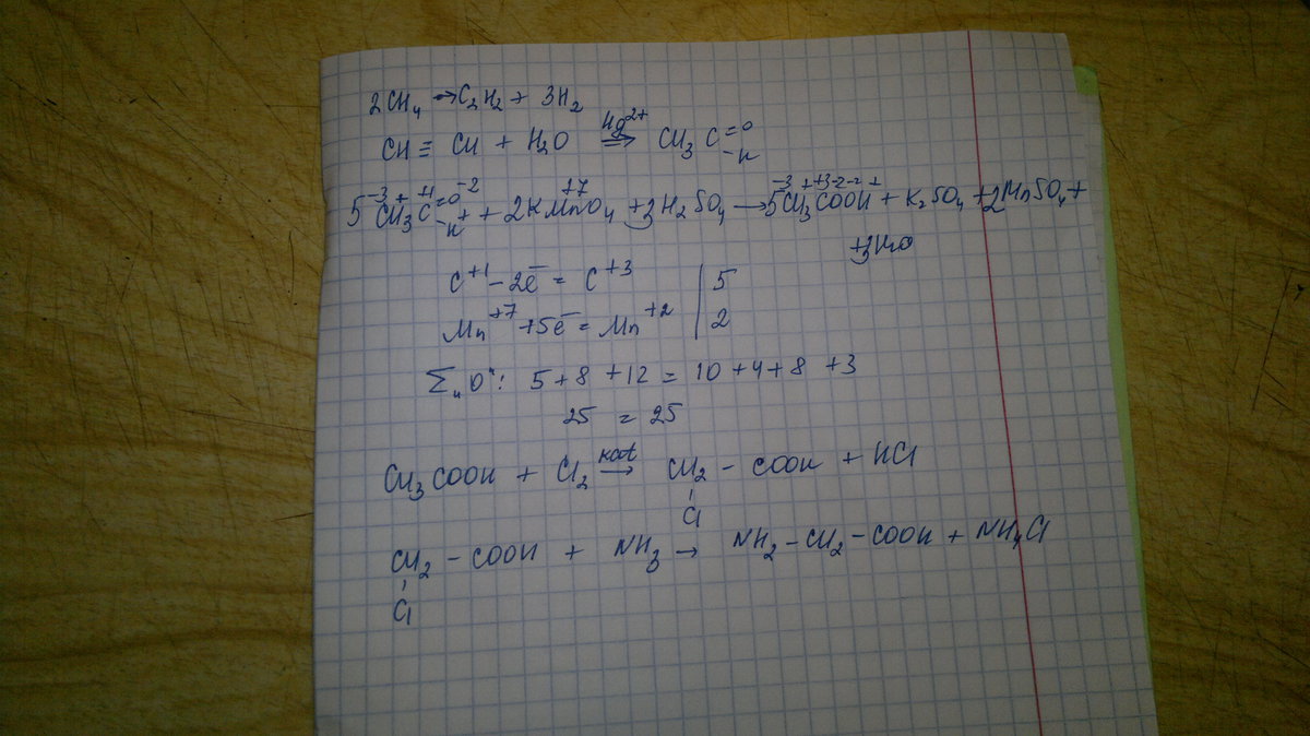 метан, ацетилен, ацетальдегид, уксусная кислота, монохлороуксусная кислота, аминоуксусная кислота