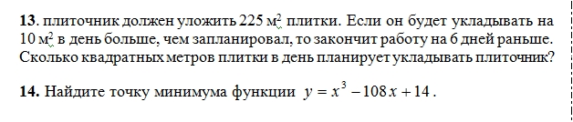 1) По плану плиточник укладывает х м² плитки в день.Тогда время на эту работу равно 225/х (дней).