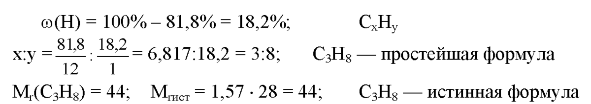 2. Найти молекулярную формулу вещества, содержащего 81,8% углерода и 18,2% водорода. Относительная плотность вещества по азоту равна 1,57. Дай название веществу и составь его структурную формулу.