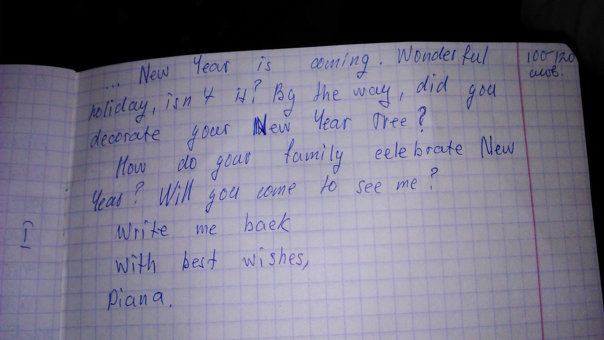 Новый год потрясающий. Отличный праздник, не так ли? Украсил ди ты свою новогоднюю елку ? Как твоя семья справляет Новый год ? Прийдешь ли ты увидится со мной?