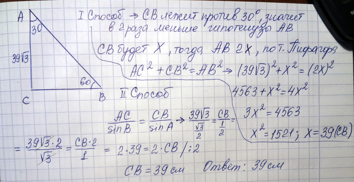В треугольники abc угол c = 90(Градусов),угол A = 30(Градусов),AC =39√3.