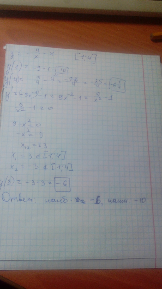След-но функция принимает своё наибольшее значение на заданном отрезке в точке x=4. Оно равно: -9/4-4=-6.25