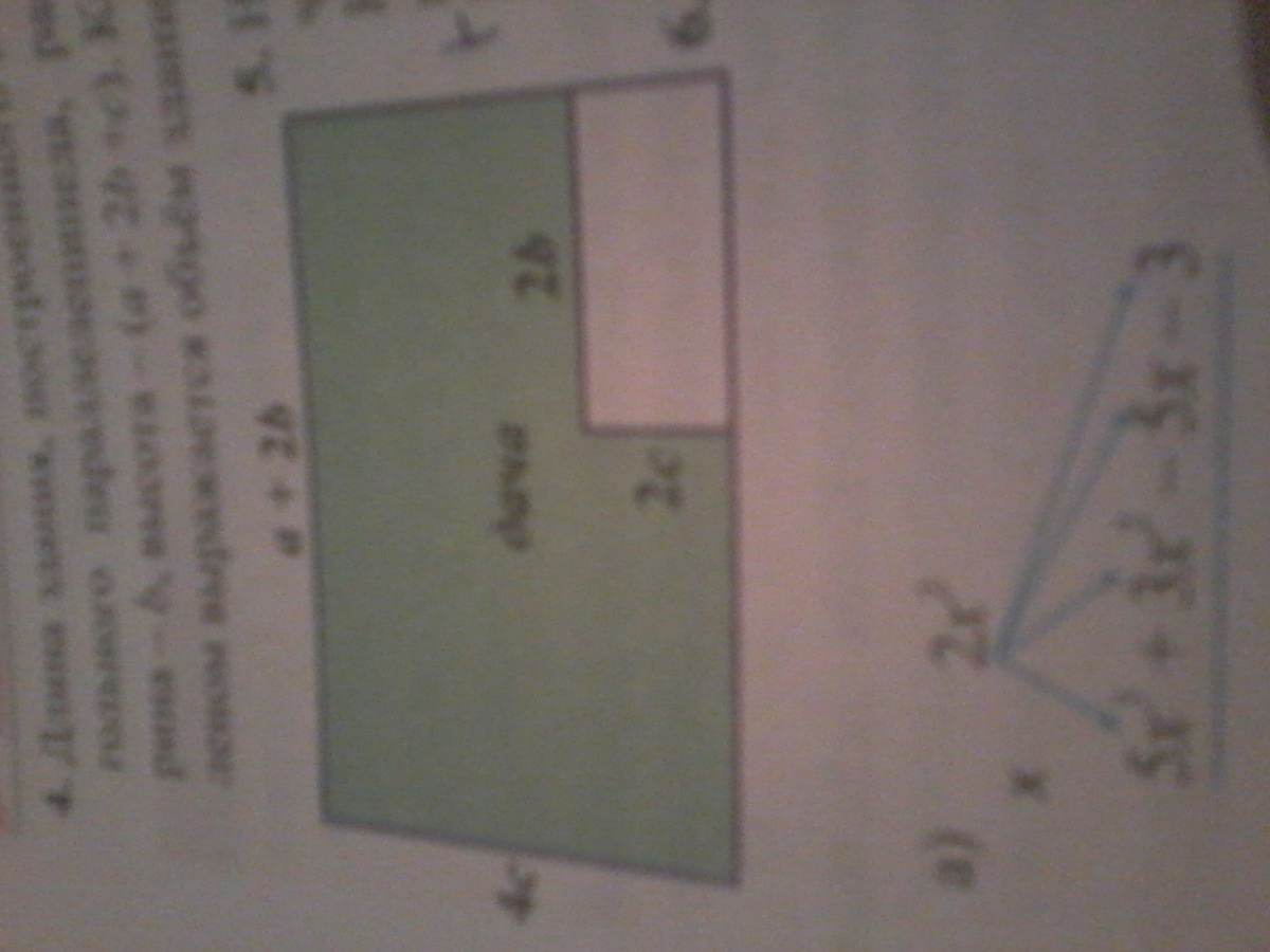 S(дачи)=S(большого прямоугольника)-S( маленького прямоугольника)=(a+2b)·4c- 2b·2c =