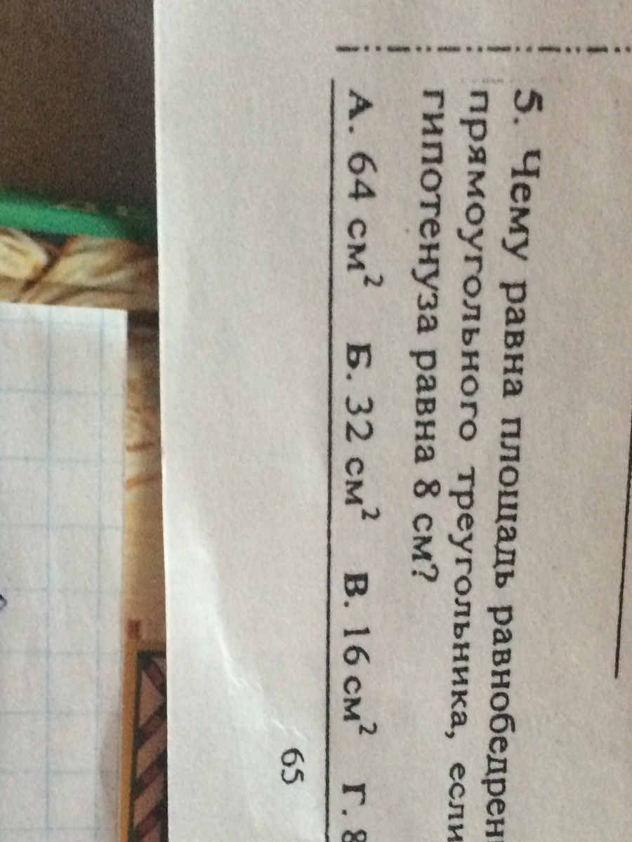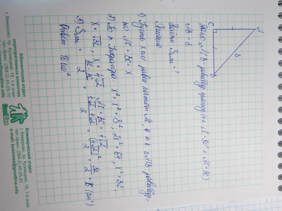 а площадь равно половине произведения катетов ,то есть 1/2 * корень из 32 * корень из 32= 16