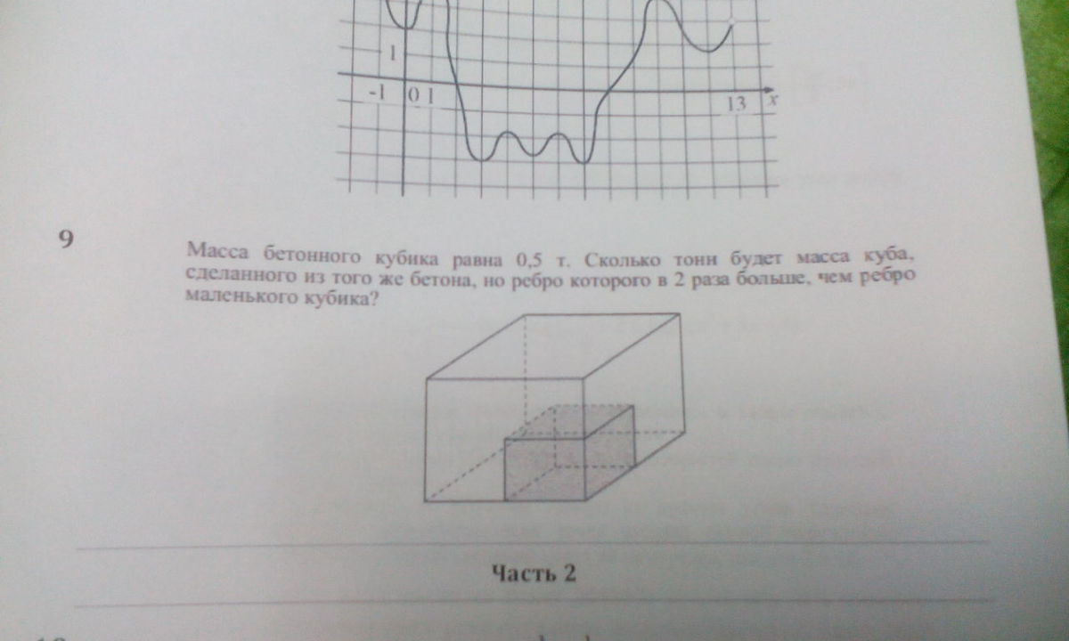 объем большого куба получиться 2*2*2=8, а масса 0,5*8=4т