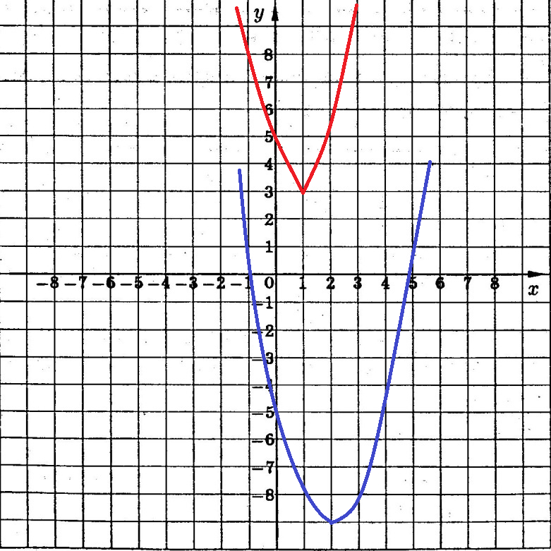 2) y=2x^2-4x+5 - парабола ветви направлены вверх (красный цвет)