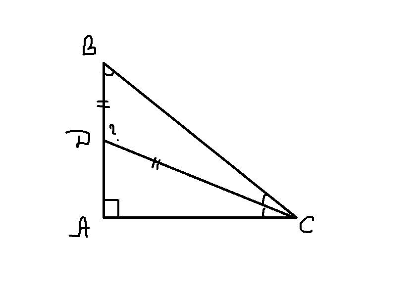 т.к. DC=DB, то треугольник BDC - равнобедренный, угол В=углу BCD=углу DCA