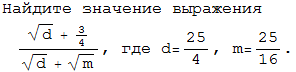 (√(25/4)+3/4)/(√(25/4)+√(25/16))=(5/2+3/4)/(5/2+5/4)=13/4:15/4=
