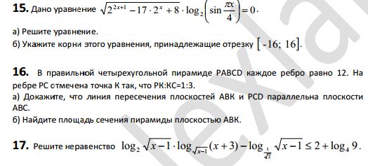 а) 2^(2x+1) -17·2^x +8 = 0 или б) log(Sin πx/4) = 0