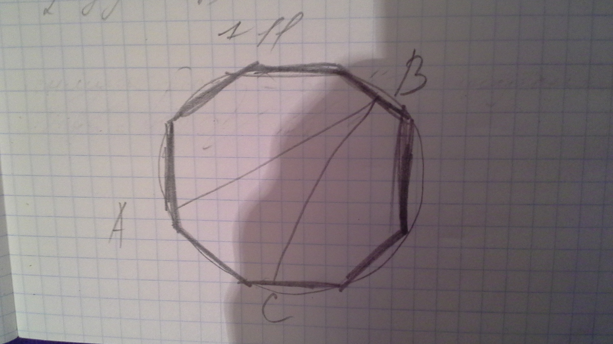 позяяя♥♥В окружность вписан равносторонний восьмиугольник.найдите величину угла АВС(сори за плохой рисунок)