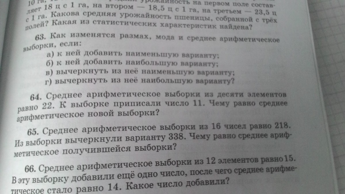 среднее арифметическое выборки из десяти элементов равно 22 к выборке.К выборке приписали число 11 .Чему равно среднее арифметическое получившейся выборки(64)