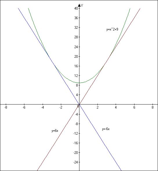 найдите все значения k при каждом из которых прямая y=kx Имеет с графиком функции y=x^2+9 ровно одну общую точку. Построите этот график и все такие прямые. ( если можно, с рисунком)