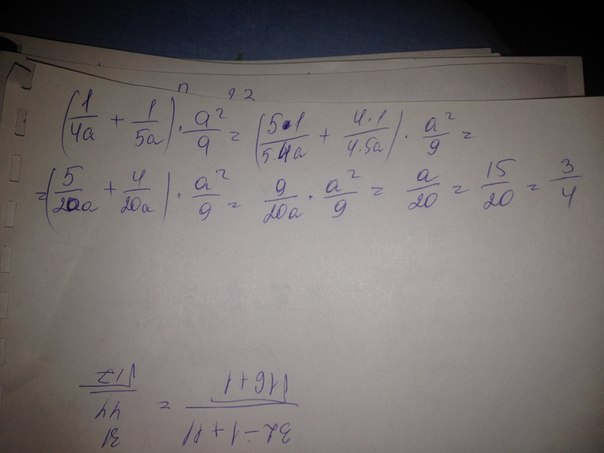 1/4а+1/5а=5/(5*4а)+4/(4*5а)=9/20а, осталось подставить а ., перемножить и сократить, у меня ответ плучился 3/4