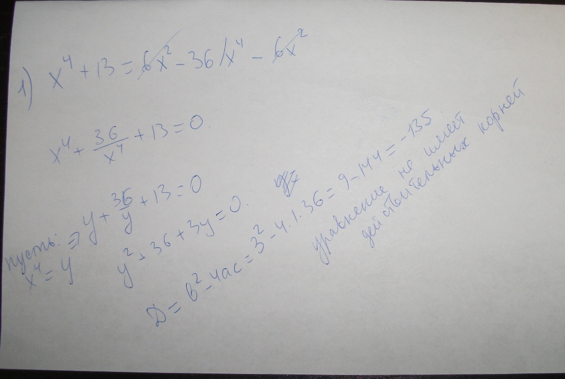 1) x^4 +13=6*x^2 - 36/x^4 - 6*x^2
