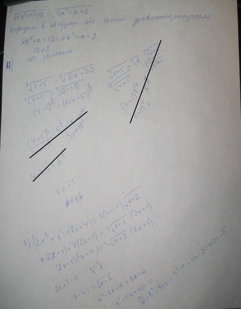 2) √5x^2+x+12=√5x²+x + 2