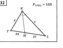 Пользуясь свойством биссектрисы угла треугольника, запишем Х:У=24:27. В свою очередь Х+У+51=153. Отсюда Х+У=102, Х=102-У. (102-У):У=8:9 8У=9(102-У) 8У+9У=918 17У=918 У=54 Х=48