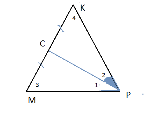 1) Δ МКР - равнобедренный, углы при основании равны∠M=∠P, значит и стороны, противолежащие этим углам равны равны⇒ МР=КР