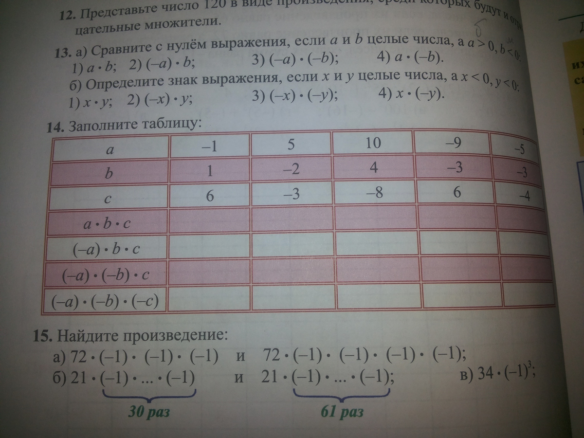 (-a) * (-b) * (-c) = 6; -30; 320; -162; 60;