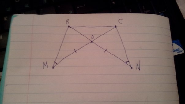 Мне кажется, в условии чего-то не хватает. По данным условиям точка С и точка В могут находится где угодно на своих прямых, тогда не будет такая симметричная картинка, и совсем не факт, что треугольник ВОС равнобедренный.
