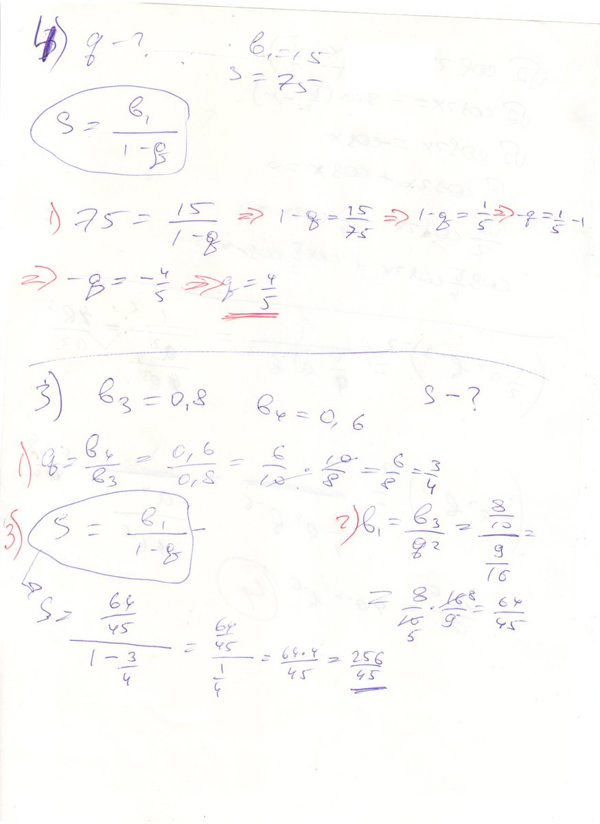 3. Найдите сумму членов бесконечно убывающей геометр. прогр. , если b3=0,8 , b4=0.16