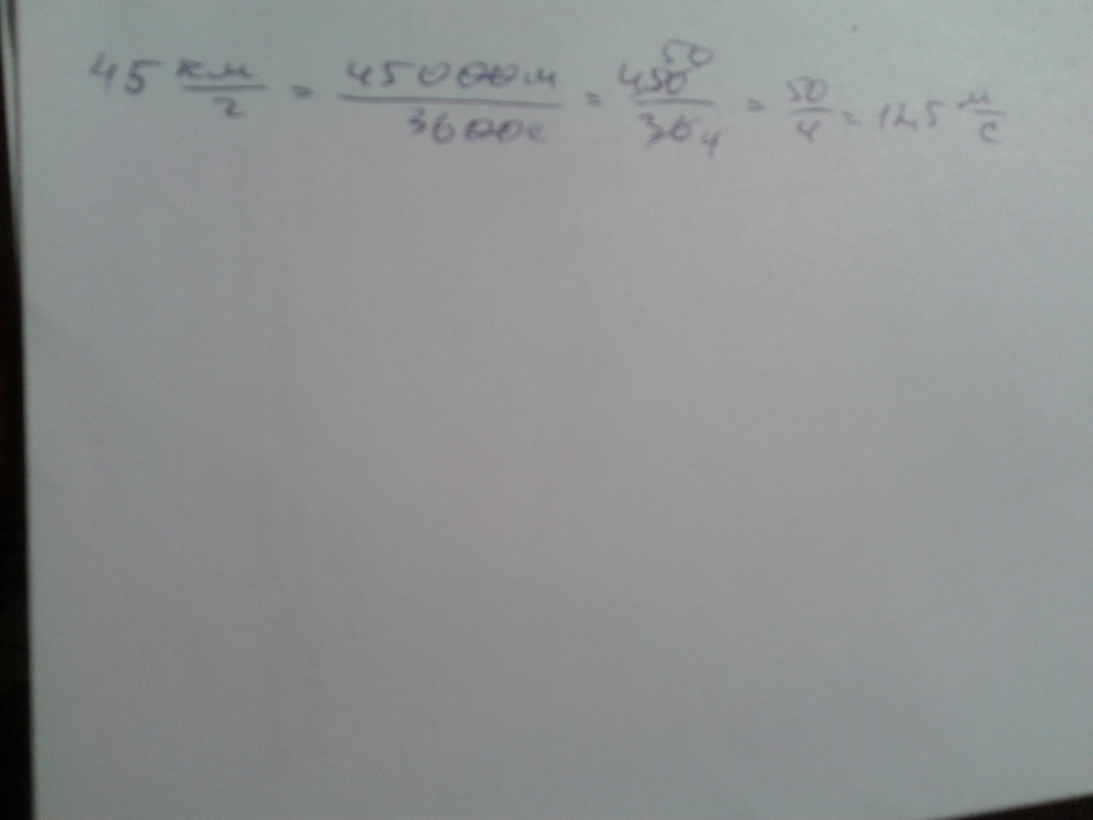 45 км/ч=45*1000м/1ч=45000м /3600с=12,5м/с