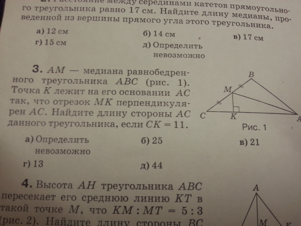 2) Рассмотрим треугольник CBH: MK параллельна BH и проходит через середину CB, следовательно MK - средняя линия, следовательно CK = KH, следовательно CH = 22