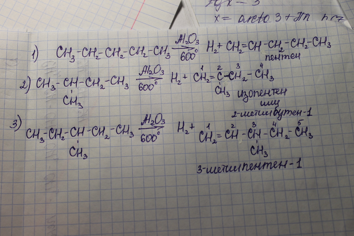 Пожалуйста, будьте добры! Помогите решить! Какие соединения образуются при дегидрировании пентана, изопентана и 3-метилпентана? Укажите условия процесса!