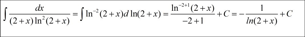 вспомним производные: (ln(2+x)'=1/(2+x) и степени: 1/(ln²(2+x)=ln⁻²(2+x)