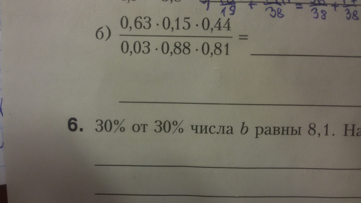 (0.63*0,15*0,44)/(0,03*0,88*0,81)=0,63/0,03*0,15/0,81*0,44/0,88=(сначала всё сокращаем на 100)= 63/3*15/81*44/88=21*5/27*1/2=21*5*1/27*2=(сокращаем 21/27=7/9)= 7*5/9*2=35/18=1цел17/18