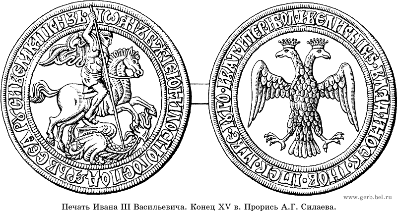 Московский великий князь не случайно помещает мифическую птицу на печати, получившей статус государственной. В западноевропейской историографии имеется достаточное количество работ, в которых воссоздается эволюция двуглавого орла как специфического знака, превратившегося в герб двух крупнейших европейских монархий, рухнувших одновременно - Российской и Австро-Венгерской. Изображение двуглавого орла известно с глубокой древности как отражение религиозных верований народов Передней Азии, в частности шумерийцев и хеттов (III-II тыс. до н.э.). На рельефах, обнаруженных в Малой Азии, двуглавый орел изображался вместе с богами Хеттского царства. Есть сведения об украшении двуглавым орлом шумеро-аккадских и хеттских печатей. В качестве культурного наследия, перешедшего к сельджукам от древних народов Передней Азии, двуглавый орел известен исламскому миру средневековья. С ним познакомились и европейцы во время крестовых походов, постепенно придав ему свойство знака власти.