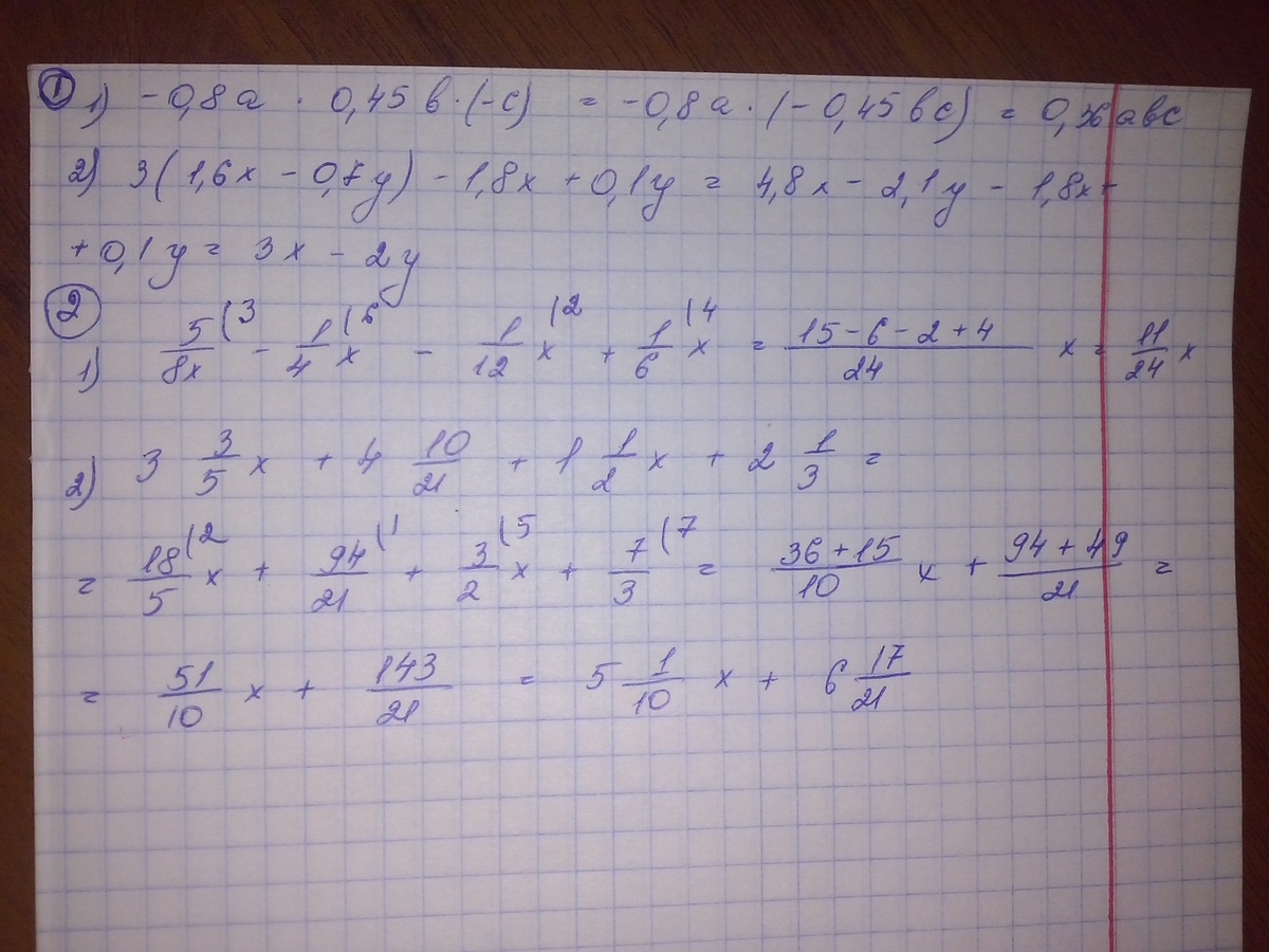3) 3(1,6x-0,7y)-1,8x+0,1y