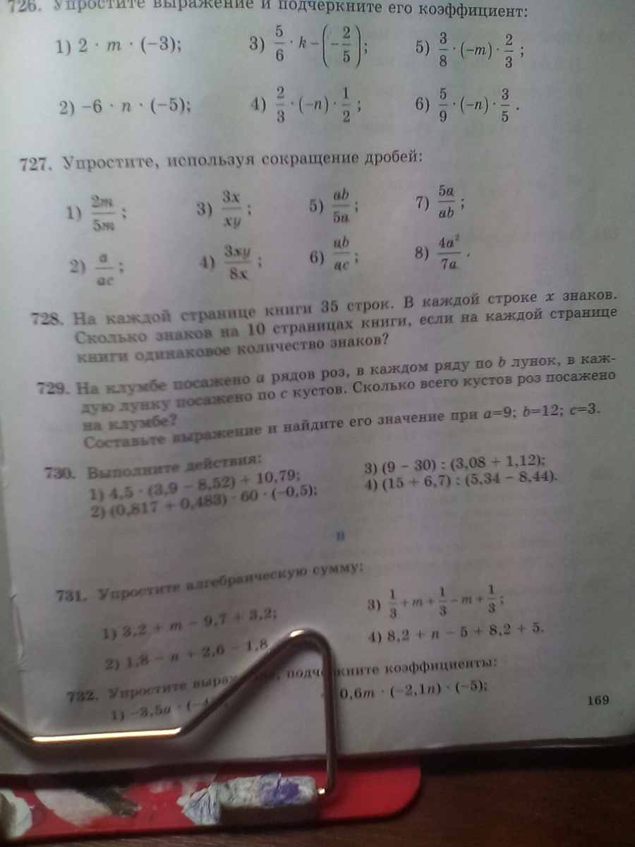(728) 35*х*10=35х*10=350х знаков на 10 страницах; (729) а*b*c=abc а при а=9, b=12, c=3, 9*12*3=324 куста роз на клумбе