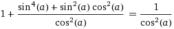 sin^2a(sin^2a+cos^2)/cos^2a+1=sin^2a/cos^2a+1=(sin^2a+cos^2a)/cos^2a=1/cos^2a