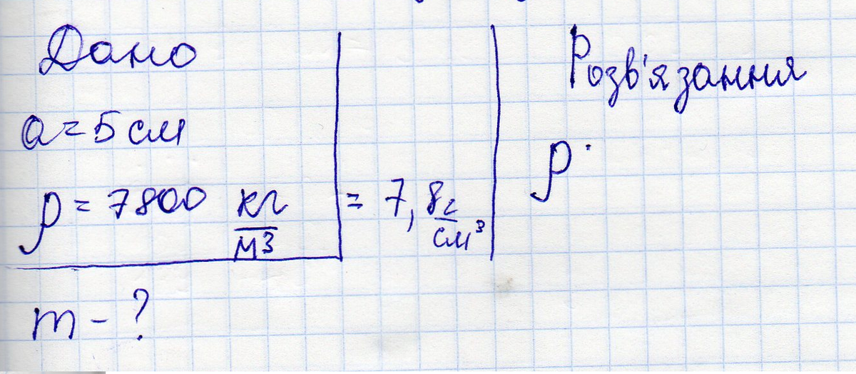 m=p*a^3=7,8*125=975 г